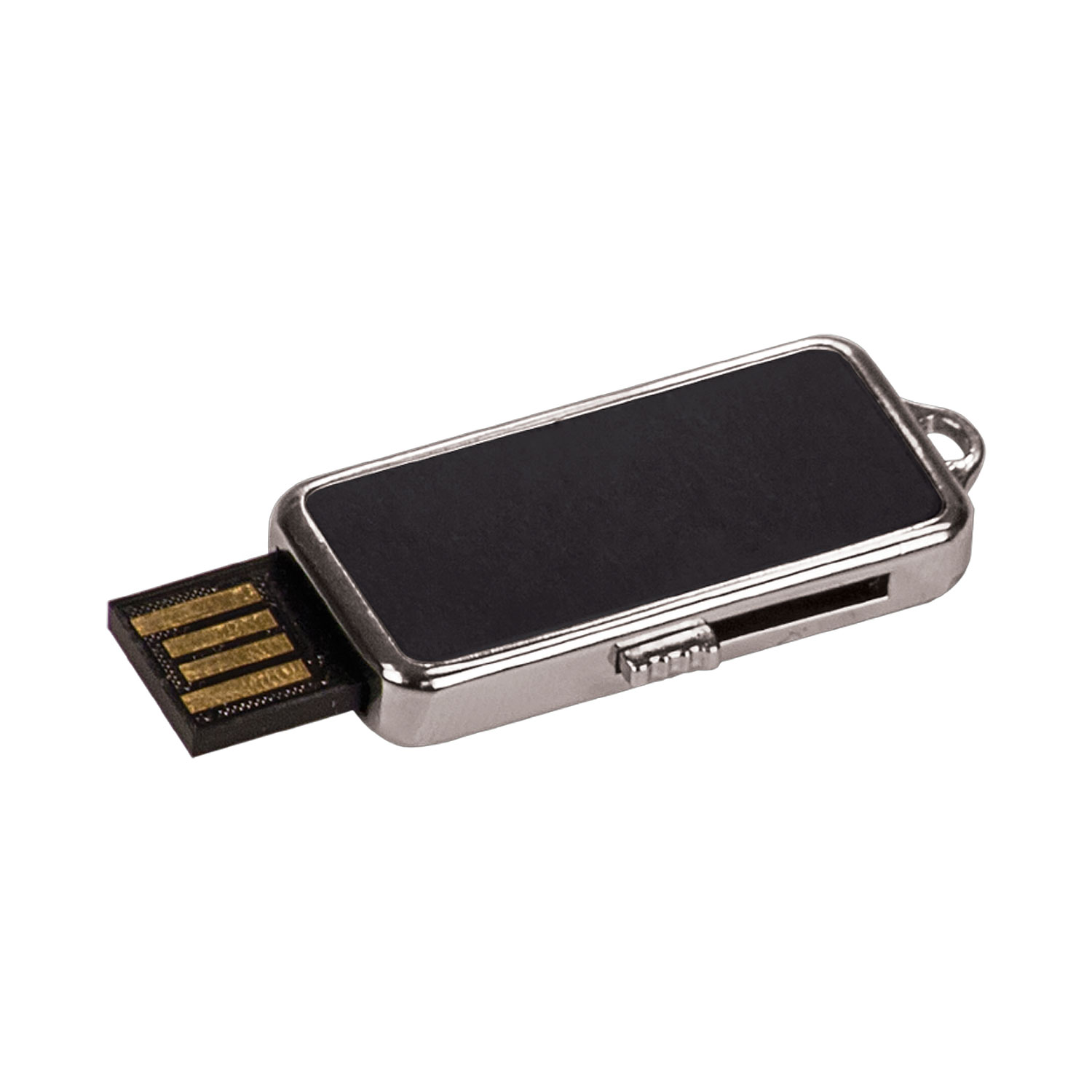 3/4″ x 1 1/2″ x 1/4″ 8GB Black/Silver Metal USB Flash Drive with Keychain